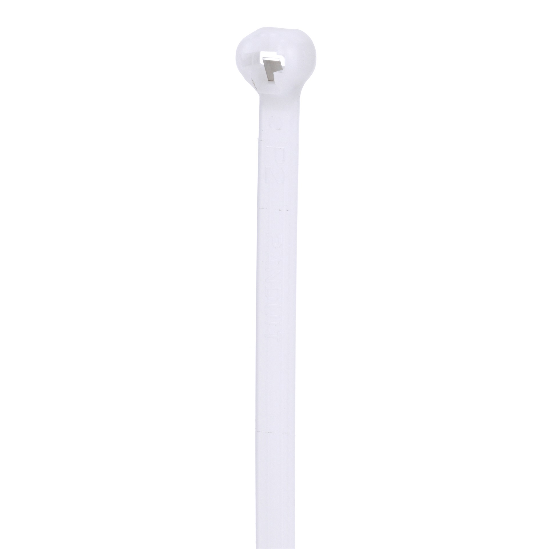 Cable Tie, Metal Barb, 14.3 Inches (363 mm) Length, Intermediate, Nylon 6.6, Natural. For indoor use. Dome-top head features unique patented design with round, smooth edges. Stainless steel locking barb provides consistent performance, reliability and infinite adjustability through entire bundle range. High strength and low thread force. Curved tip is easy to pick up from flat surfaces and allows faster initial threading.