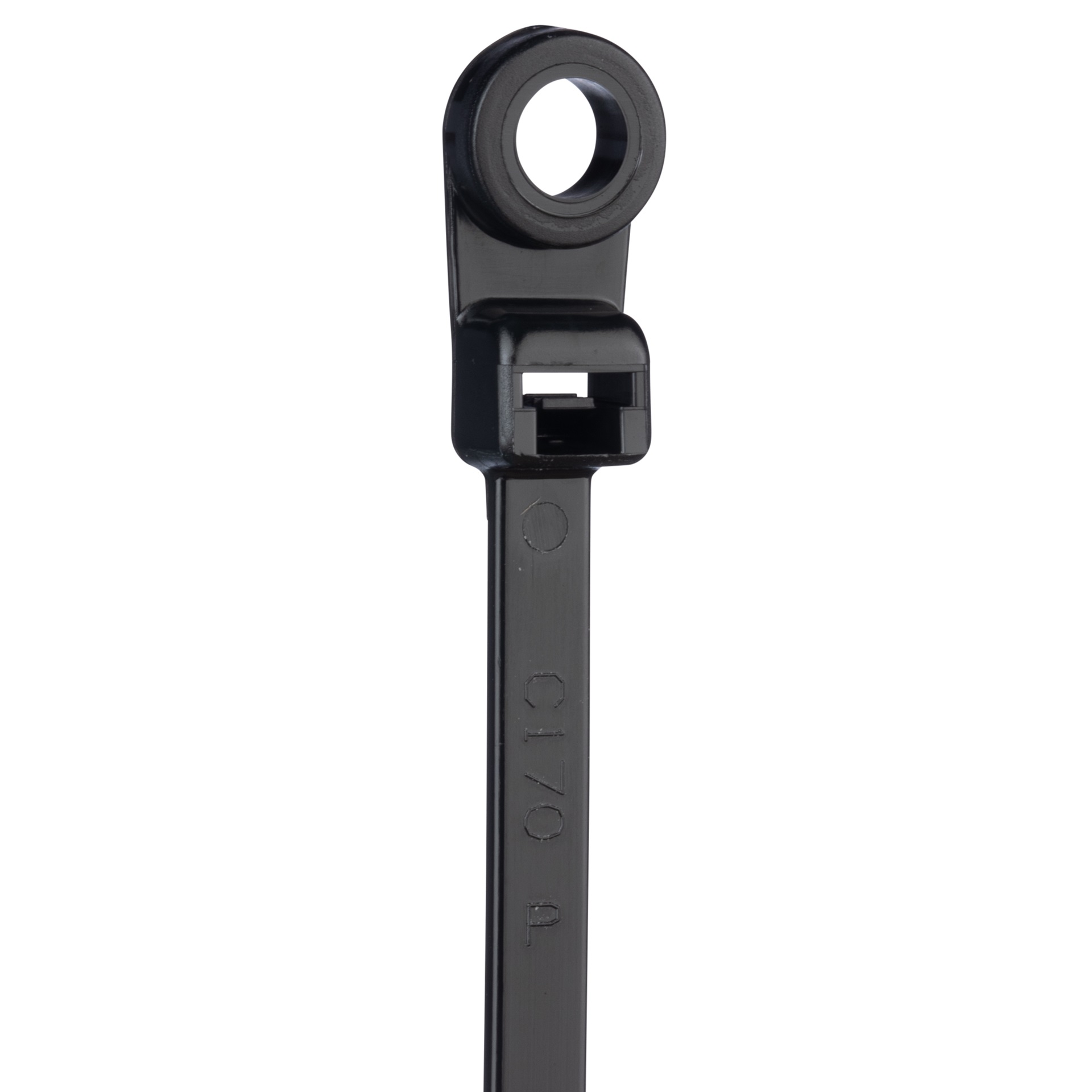 Pan-Ty® locking clamp tie, light-heavy cross section, 1/4 (M6) screw, 15.1 (384mm) length, weather resistant nylon 6.6, black, standard package.