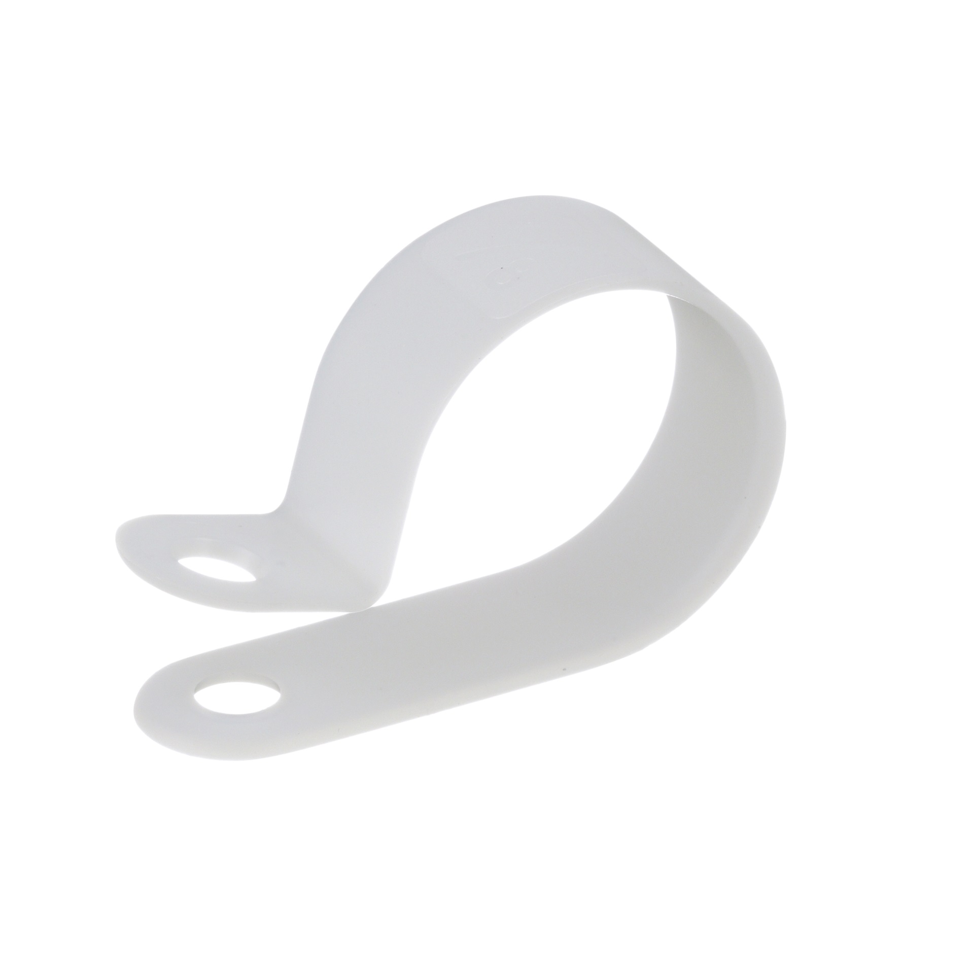 Fixed diameter cable clamp, heavy duty, #10 screw (M5), .69" (17.5mm) bundle, white, standard package.