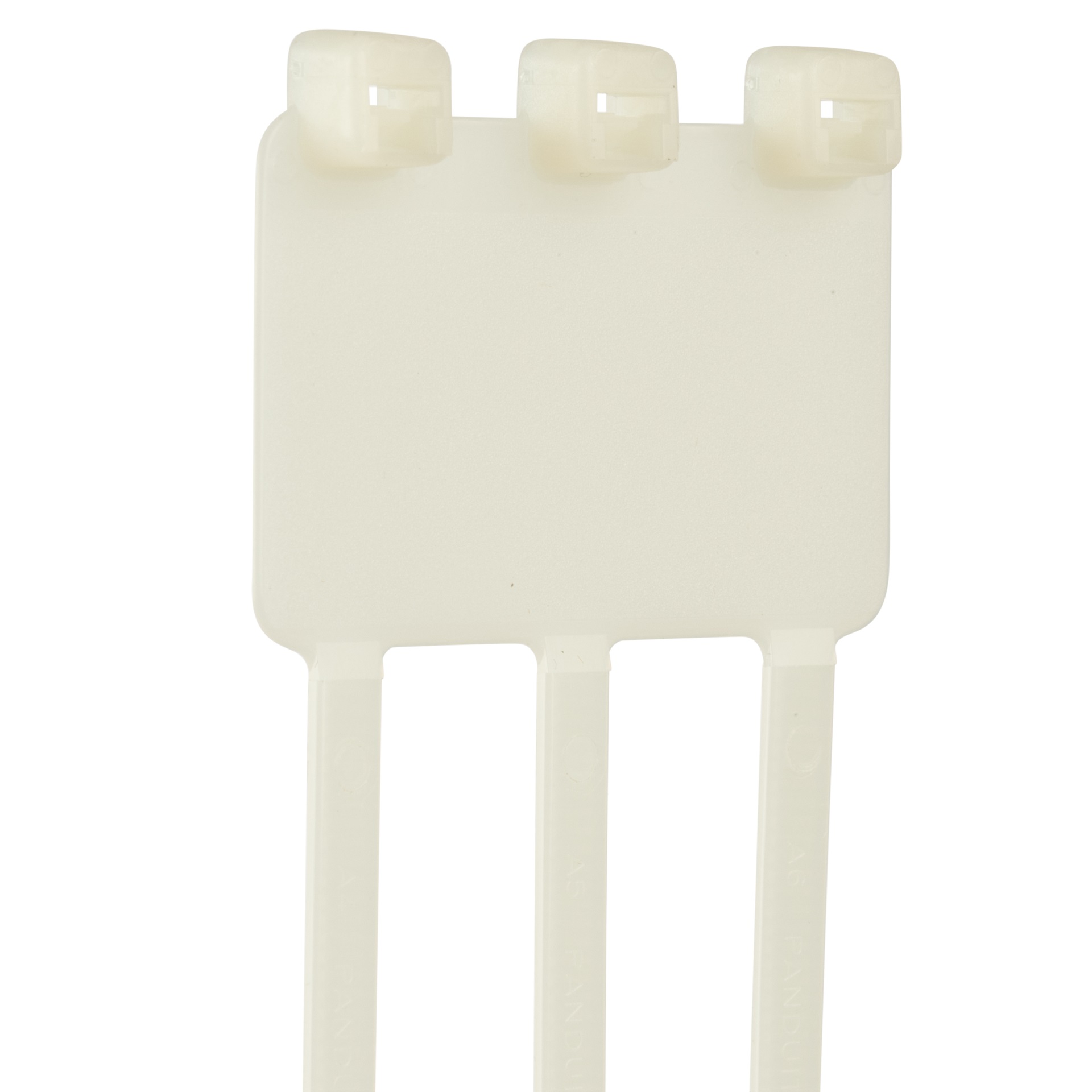 Marker Tie, Wrap Style, 7.4 Inches (188 mm) Length, Standard, Nylon, Natural. For indoor use. Used to fasten and identify bundles at the same time. One-piece construction for consistent performance and reliability. Curved tip is easy to pick up from flat surfaces and allows faster initial threading. Can be used with Panduit permanent marker pens.