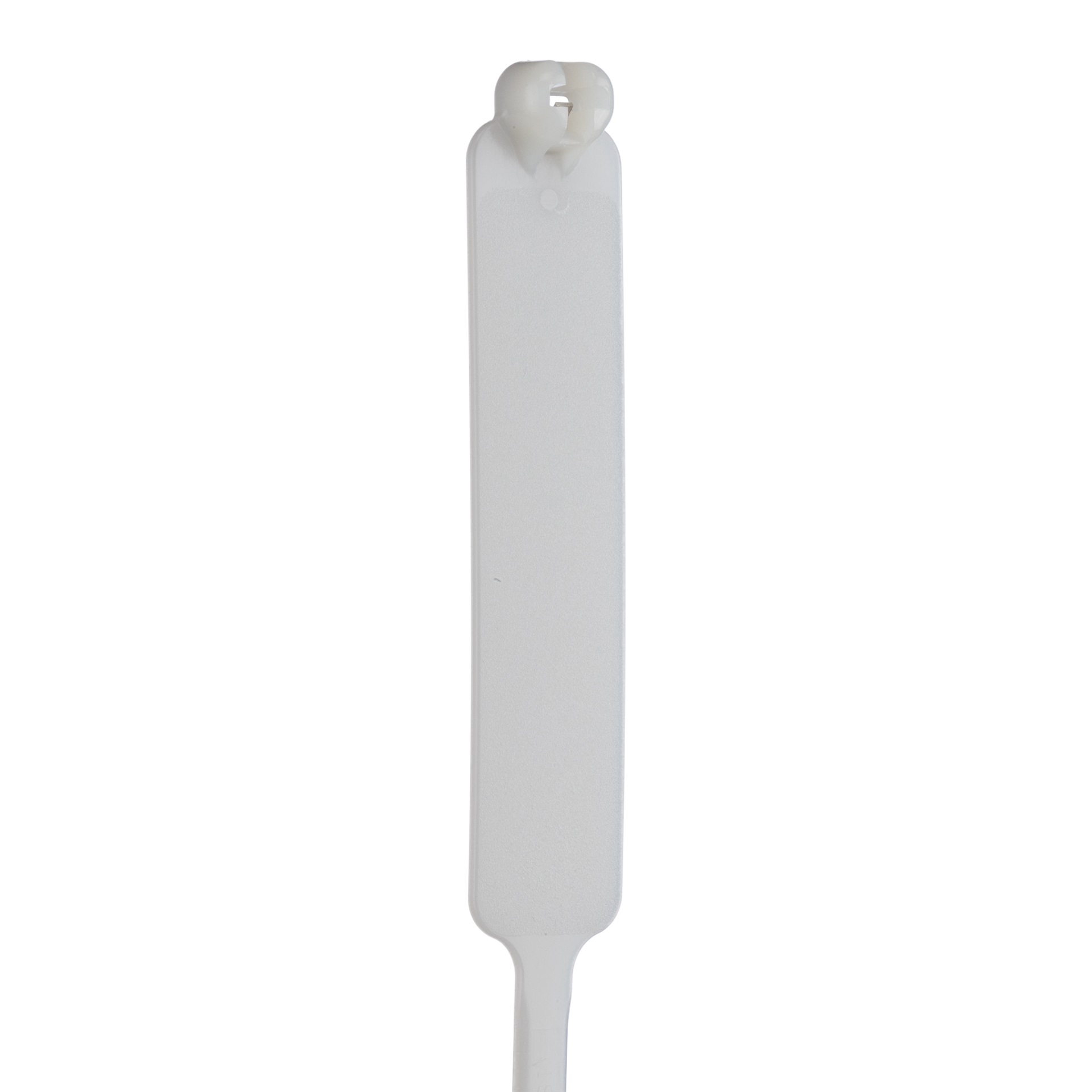 Marker Tie, Wrap Style, 15.1 Inches (384 mm) Length, Standard, Nylon 6.6, Natural. For indoor use. Used to fasten and identify bundles at the same time. Stainless steel locking barb provides consistent performance, reliability and infinite adjustability through entire bundle range. Curved tip is easy to pick up from flat surfaces and allows faster initial threading. Can be used with Panduit permanent marker pens.