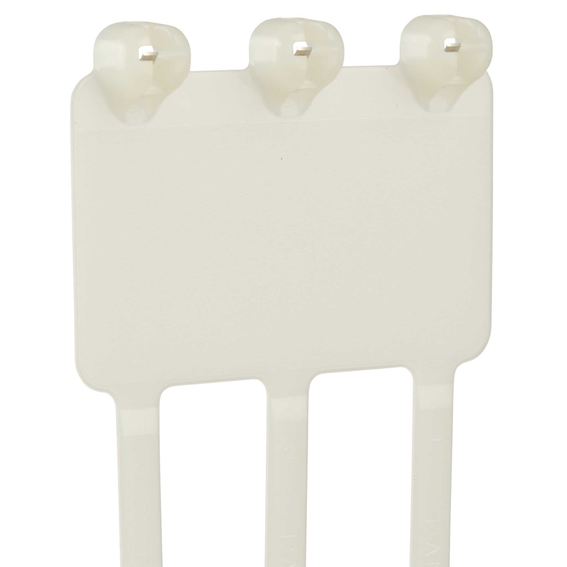 Dome-Top® Barb Ty Marker Ties; Application: General; Bundle Diameter Range (In.): 0.37 - 2.00; Bundle Diameter Range (mm): 9.5 - 51.0; Color: Natural; Cross Section: Standard; Environment: Indoor; Head Height (In.): 0.22; Head Height (mm): 5.6; Head Width (In.): 0.32; Head Width (mm): 8.1; Locking Style: Locking; Marker Type: Wrap; Marker Write-On Area (In.): 1.81 x 0.91; Marker Write-On Area (mm): 46.0 x 23.1; Marker/Flag Tie Labeling Area: Adjacent to bundle; Material: Nylon 6.6; Maximum Bundle Diameter (In.): 2 Inch; Maximum Bundle Diameter (mm): 51 Millimeters; Min. Loop Tensile Strength Lbs. (N): 50 (222); Minimum Bundle Diameter (In.): 0.37 Inch; Minimum Bundle Diameter (mm): 9.5 Millimeters; Minimum Loop Tensile Strength (lb): 50 Pound; Minimum Loop Tensile Strength (N): 222 Newton; Overall Length (In.): 8 Inch; Overall Length (mm): 203 Millimeters; Overall Width (In.): 0.19 Inch; Overall Width (mm): 4.7 Millimeters; Product Type: Cable Ties; Package Quantity: 250