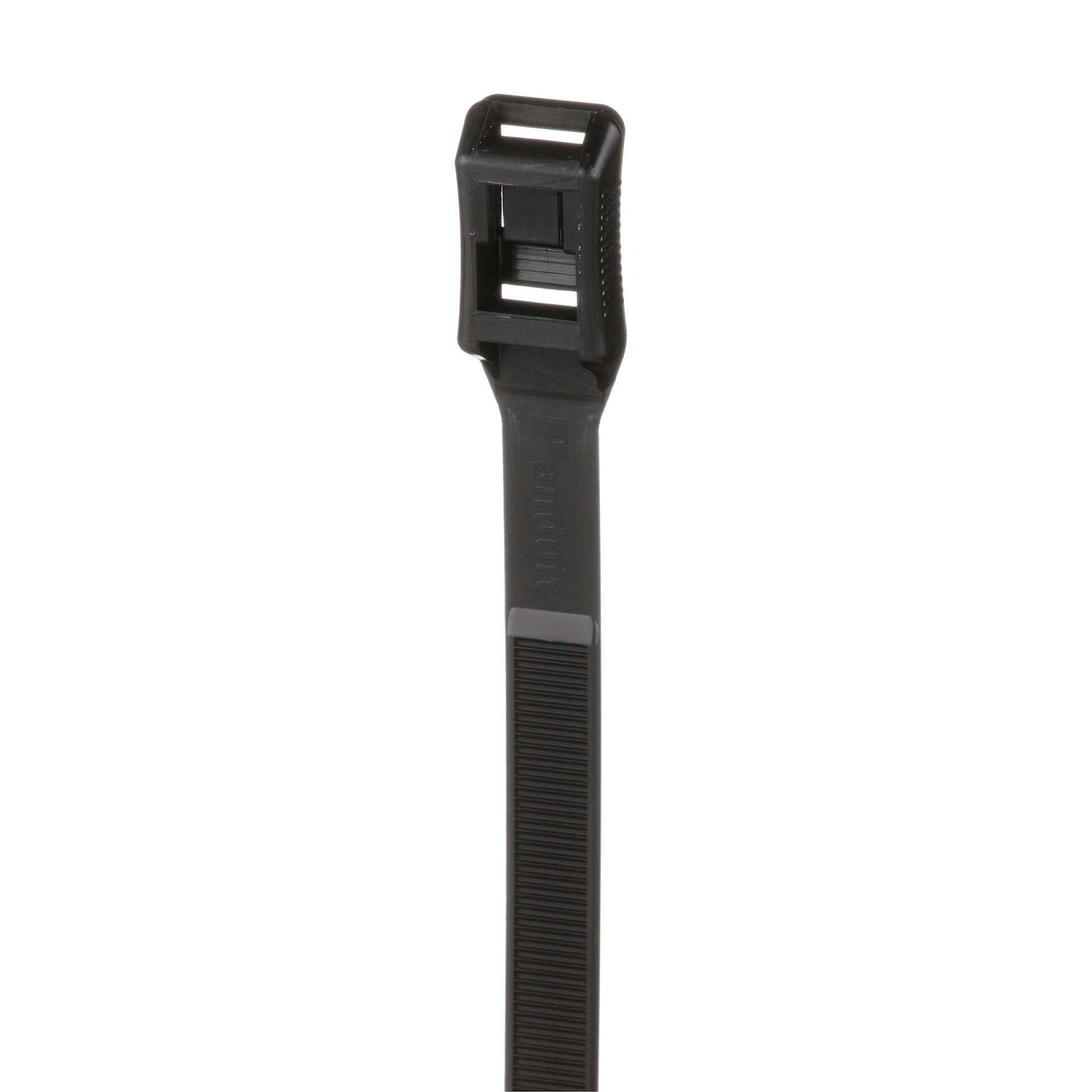 Panduit HV965-C0 Hyper-VTTM in line cable ties have a perfect balance of strong and flexible. They are flexible enough to conform to irregular bundles, while double-sided teeth and a two-wedge locking design add extra locking strength with low threading force. A releasable head makes these in-line cable ties the ideal solution for temporary securing. Light-heavy cross section, 10.4” (265mm) length, made of Weather Resistant Nylon 6.6, are black in color, and come in packages of 100.