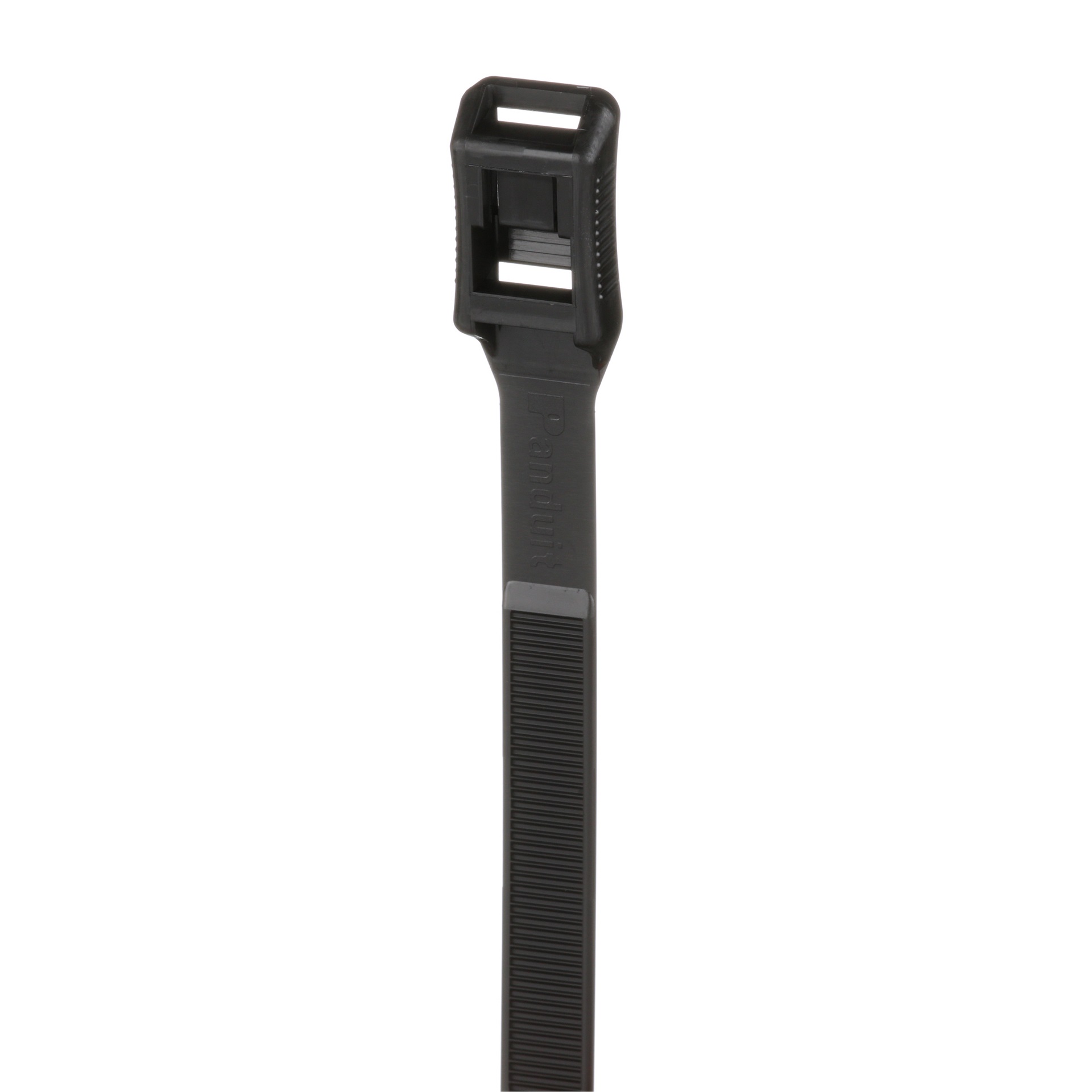 Panduit HV9150-C0 Hyper-VTTM in line cable ties have a perfect balance of strong and flexible. They are flexible enough to conform to irregular bundles, while double-sided teeth and a two-wedge locking design add extra locking strength with low threading force. A releasable head makes these in-line cable ties the ideal solution for temporary securing. Light-heavy cross section, 20.7” (525mm) length, made of Weather Resistant Nylon 6.6, are black in color, and come in packages of 100.