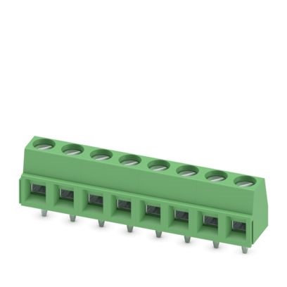 Morsetto circuito stampato, corrente nominale: 17,5 A, tensione di dimensionamento (III/2): 400 V, sezione nominale: 1,5 mm², numero dei potenziali: 8, numero di file: 1, numero di poli per fila: 8, serie di prodotti: MKDSN 1,5, passo: 5,08 mm, tipo di connessione: Connessione a vite con gabbia, forma di attacco delle viti: L Fessura longitudinale, montaggio: Saldatura a onde, direzione di collegamento conduttore/scheda: 0 °, colore: verde, Layout Pin: Pinning lineare, Lunghezza pin [P]: 3,5 mm, numero di pin di saldatura per potenziale: 1, tipo di confezione: confezionato nel cartone