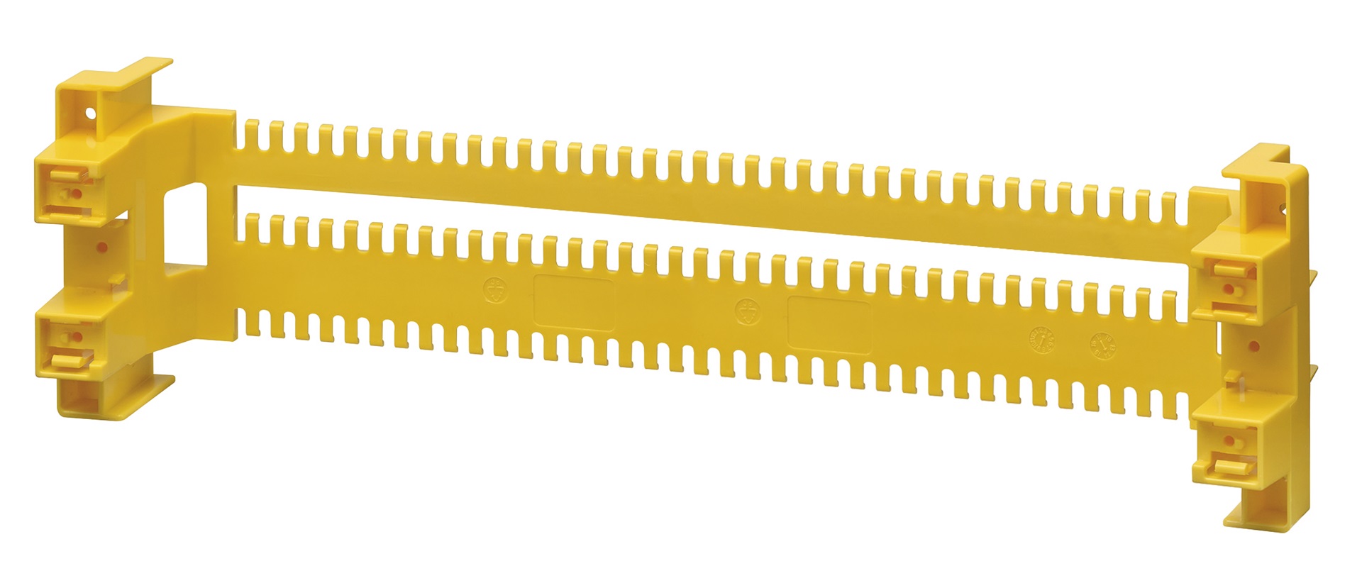 Flangia ferma tubi 18 moduli removibile utilizzabile anche per installazione in batteria verticale per centralini estetici 54 e 72 moduli, da agganciare alla scatola, giallo