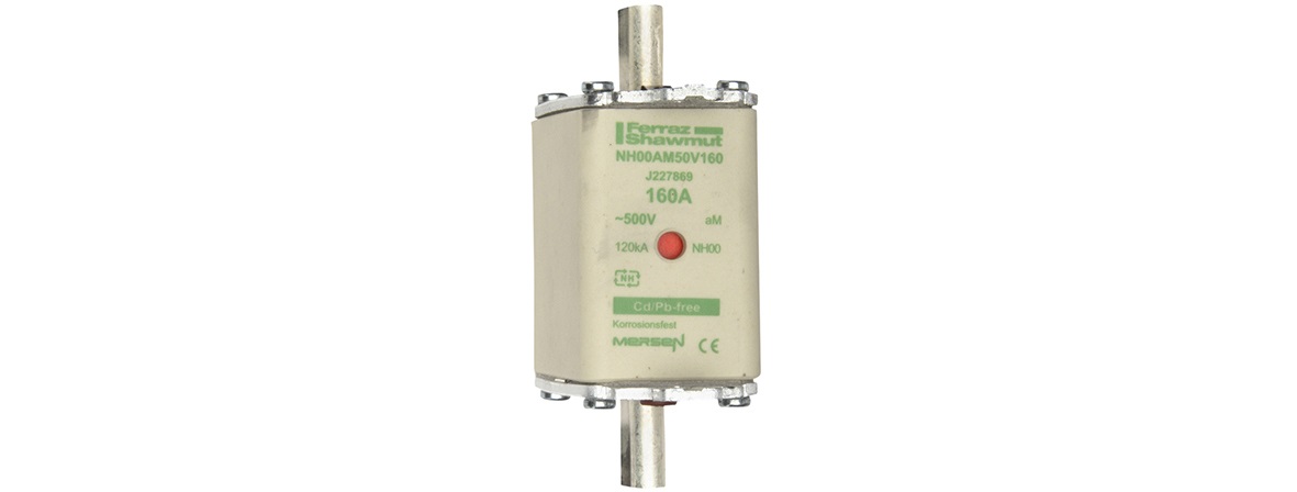 DIN NH Standard fuse-link aM Size NH00 500VAC 160A live tags Double indicator Body width 30 mm