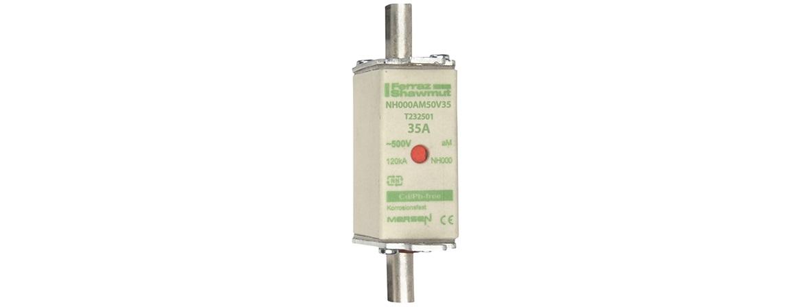 The NH system is classified among plug-in fuse systems and is composed of: fuse-base (possibly including terminal covers and phase barriers) fuse-link with blade contact fuse-link replacement device (LV HRC fuse puller) Since the design of this system cannot guarantee non-interchangeability of rated current it must be handled by a qualified professional. Type aM NH fuse-links are partial-range breaking capacity fuse-links, used to protect motor circuits as they are strongly current-limiting and have low power losses. They interrupt currents from 6.3 times In up to their maximum breaking capacity and are therefore suited for short-circuit protection only. They must be associated with other switchgear for protection against overloads. These fuse-links can have a rated current equal to the motors nominal current.
