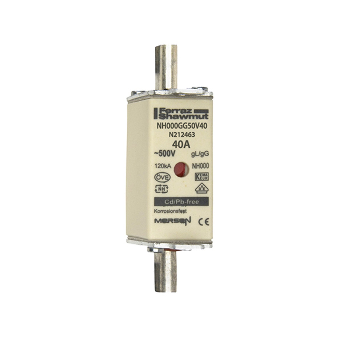 DIN NH Standard fuse-link gG Size NH000 500VAC 250VDC 40A live tags Double indicator Body width 21mm