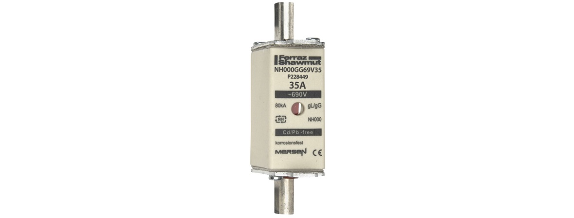 DIN NH Standard fuse-link gG Size NH000 690VAC 250VDC 35A live tags Double indicator Body width 21mm