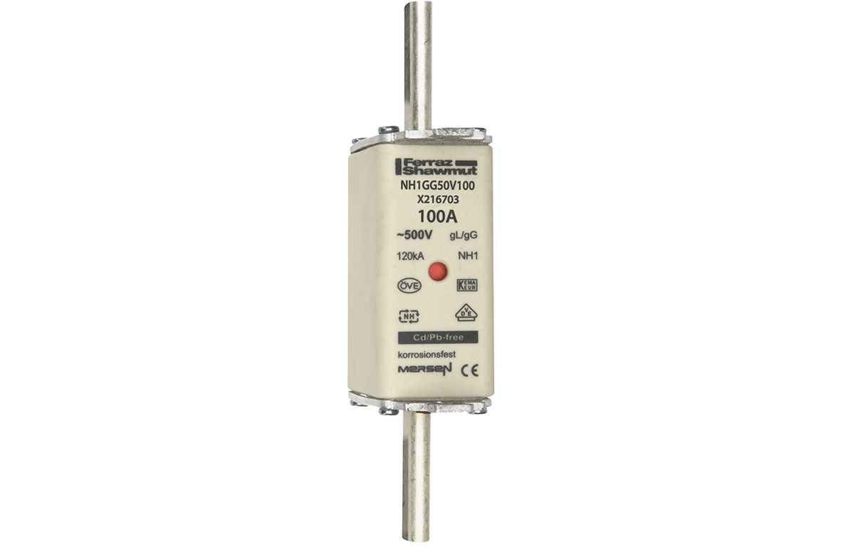 The NH system is classified among plug-in fuse systems and is composed of: fuse-base (possibly including terminal covers and phase barriers) fuse-link with blade contact fuse-link replacement device (LV HRC fuse puller) Since the design of this system cannot guarantee non-interchangeability of rated current it must be handled by a qualified professional. Type gG NH fuse-links are full range breaking capacity fuse-links and are used to protect cables and equipment. They can interrupt any current surge, from the lowest fusing current up to their breaking capacity, and so can be used alone as protection. They also protect electrical devices and industrial set-ups from the electrodynamic effects of very high short-circuit currents.