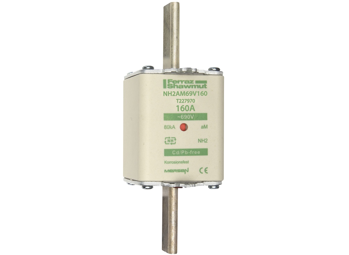 DIN NH Standard fuse-link aM Size NH2 690VAC 160A live tags Double indicator Body width 52 mm