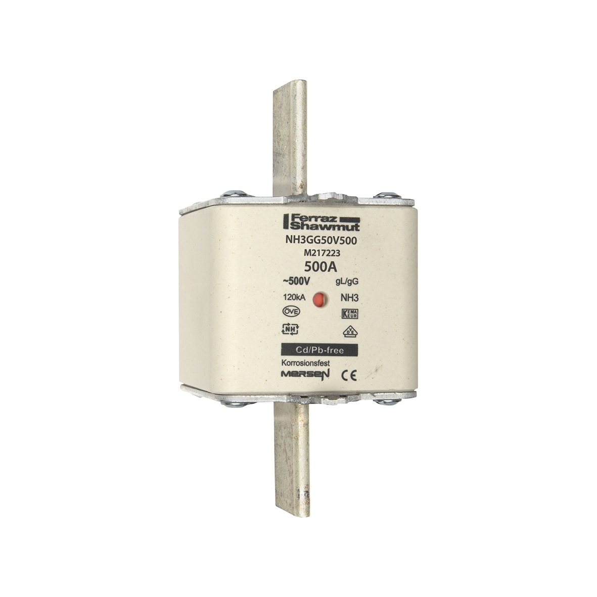 DIN NH Standard fuse-link gG Size NH3 500VAC 250VDC 500A live tags Double indicator Body width 71.9mm