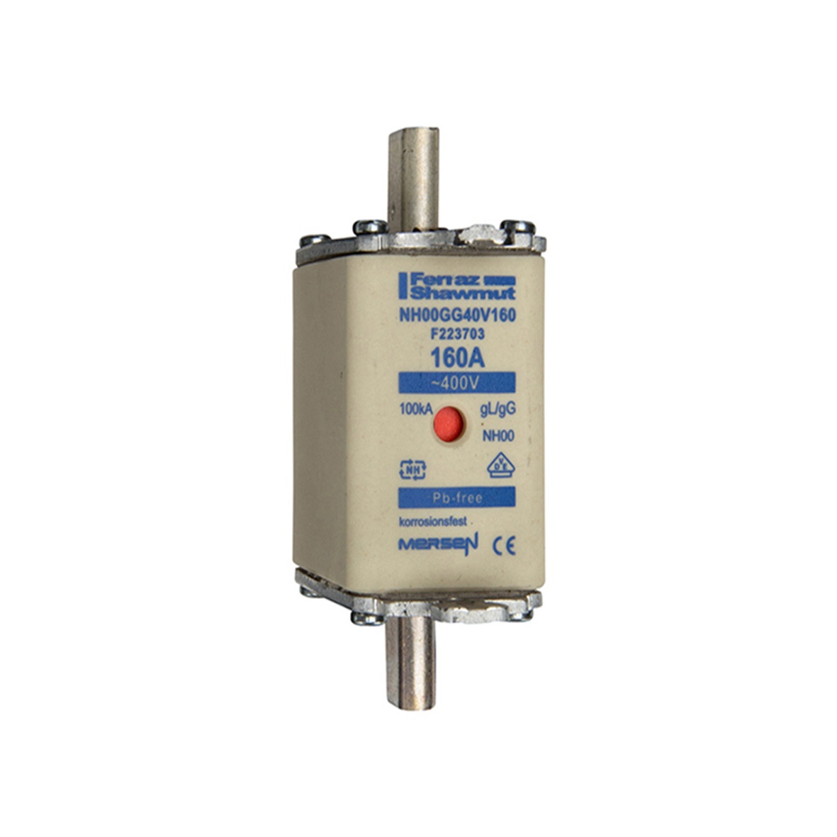 DIN NH Standard fuse-link gG Size NH00 400VAC 160A live tags Double indicator Body width 30 mm