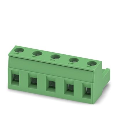 Connettore per circuiti stampati, sezione nominale: 2,5 mm², colore: verde, corrente nominale: 12 A, tensione di dimensionamento (III/2): 630 V, superficie contatti: Sn, tipo di connessione del contatto: Femmina, numero dei potenziali: 5, numero di file: 1, numero poli: 5, numero di connessioni: 5, serie di prodotti: GMSTB 2,5/..-ST, passo: 7,62 mm, tipo di connessione: Connessione a vite con gabbia, forma di attacco delle viti: L Fessura longitudinale, direzione di collegamento conduttore/scheda: 0 °, gancio di bloccaggio: - Gancio di bloccaggio, sistema di spine: COMBICON MSTB 2,5, bloccaggio: assente, tipo di fissaggio: assente, tipo di confezione: confezionato nel cartone
