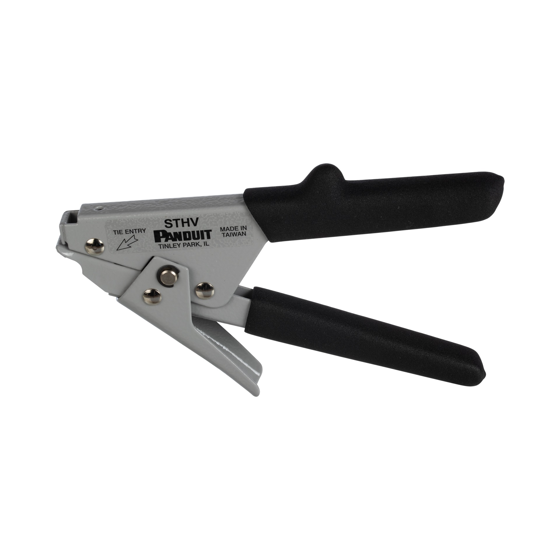 Panduit STHV Cable Tie Hand Tool is made with durable all-steel construction and features a “travel stop” that helps prevent pinched fingers. Tool is light gray and black, installs light-heavy and heavy cross section cable ties. Weighs 13oz (367g) and is sold individually.