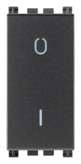 Interruttore 2P 16 AX 250 V~ illuminabile, tasto sostituibile, materiale antibatterico, grigio. Max 200 W per lampade con alimentatore integrato (IEC 60669-1:2017)