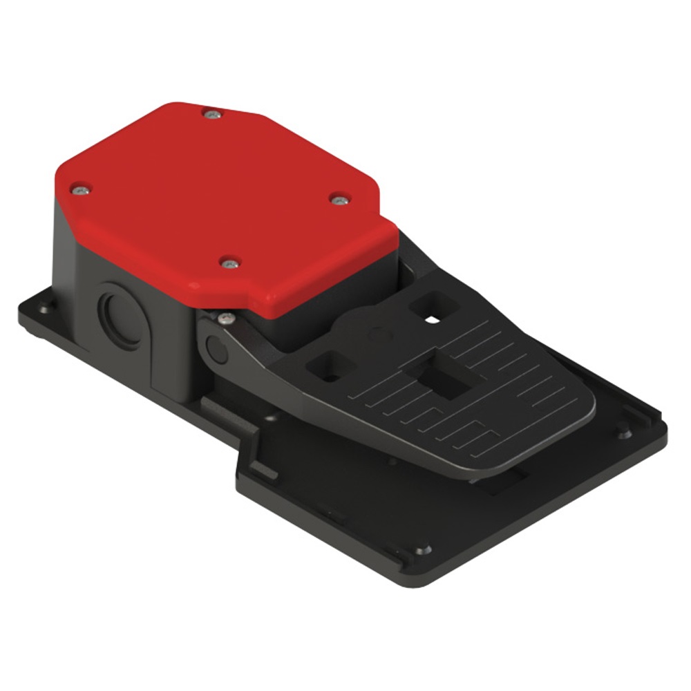 Interruttore a pedale singolo senza protezione, Custodia: Custodia in tecnopolimero, una entrata cavi filettata M20x1,5, Tipo copertura: Senza protezione, colore Rosso (RAL 3020), Unit? di contatto: 1NO+1NC scatto rapido, Grado di protezione: IP53.