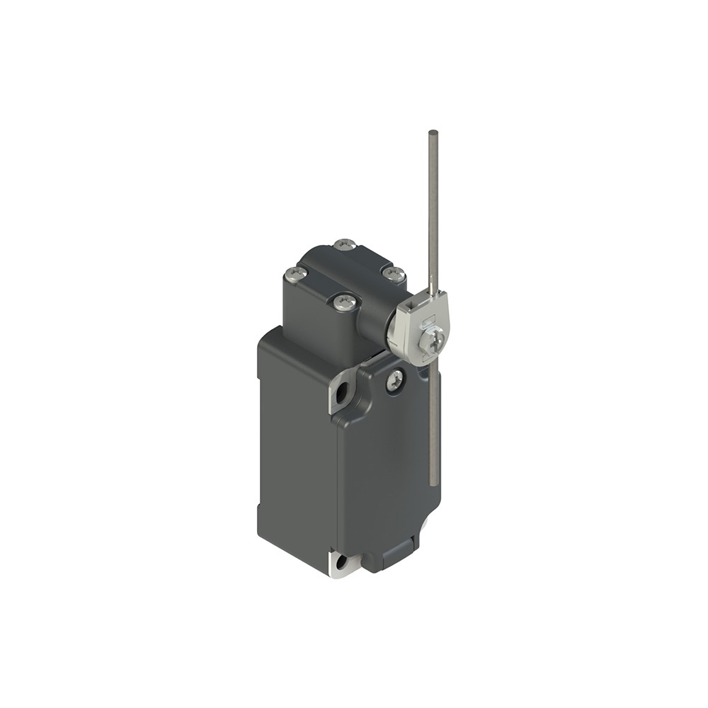 Interruttore di posizione a leva girevole con asta tonda regolabile, Custodia: Custodia in tecnopolimero, una entrata cavi filettata PG 13,5 (serie FP), Unit? di contatto: 1NO+1NC scatto rapido (B5), Testa: Testa normale per leve girevoli , Azionatore: A leva girevole con asta tonda in acciaio inox diametro 3x125 mm regolabile, Grado di protezione: IP67 secondo EN 60529.