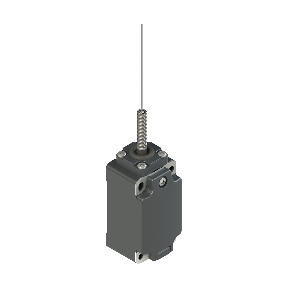 Interruttore di posizione ad asta a molla con puntale a filo, Custodia: Custodia in tecnopolimero, una entrata cavi filettata PG 13,5 (serie FP), Unit? di contatto: 2NO scatto lento (B10), Testa: Ad asta a molla con puntale a filo, Grado di protezione: IP67 secondo EN 60529.