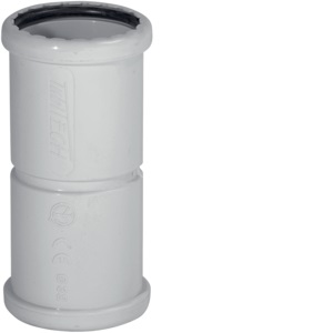 Manicotto per tubo rigido di colore grigio, progettato per garantire un collegamento sicuro e resistente tra tubi elettrici. Realizzato con materiali durevoli e adatti all'installazione di impianti elettrici, assicura protezione e isolamento ottimali. Ideale per applicazioni che richiedono resistenza meccanica e facilità di montaggio, contribuisce a mantenere l'integrità del sistema elettrico.
