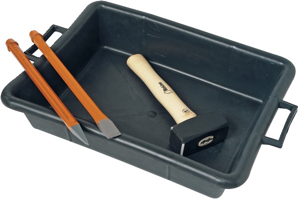 Kit per edilizia composto da: 1 mazzetta 1,5 kg BIZ 700 075, 1 scalpello da muratore, 1 broccia da muratore, 1 trogolo.
