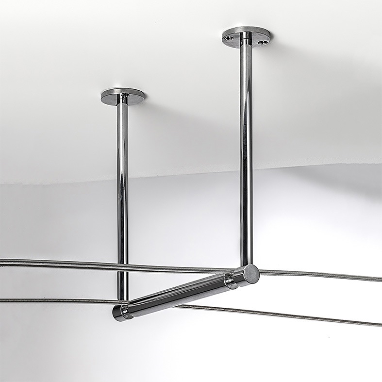 Sistema a tesata con coppia di cavi con interasse160mm: permette di installare apparecchi con fonte luminosa con LED integrato o con attacco tradizionale (GU10, R7s, E27 che consentono di montare lampadina LED). Corpi illuminanti da posizionare secondo le esigenze di installazione in estruso di all uminio (verniciato bianco opaco o grigio opaco) ediffusore in policarbonato. Disponibili in versione luce diffusa, monoemissione o biemissione o a sp ot con corpo illuminante orientabile su due assi.LED disponibile in due gradazioni (3000K e 4000K).