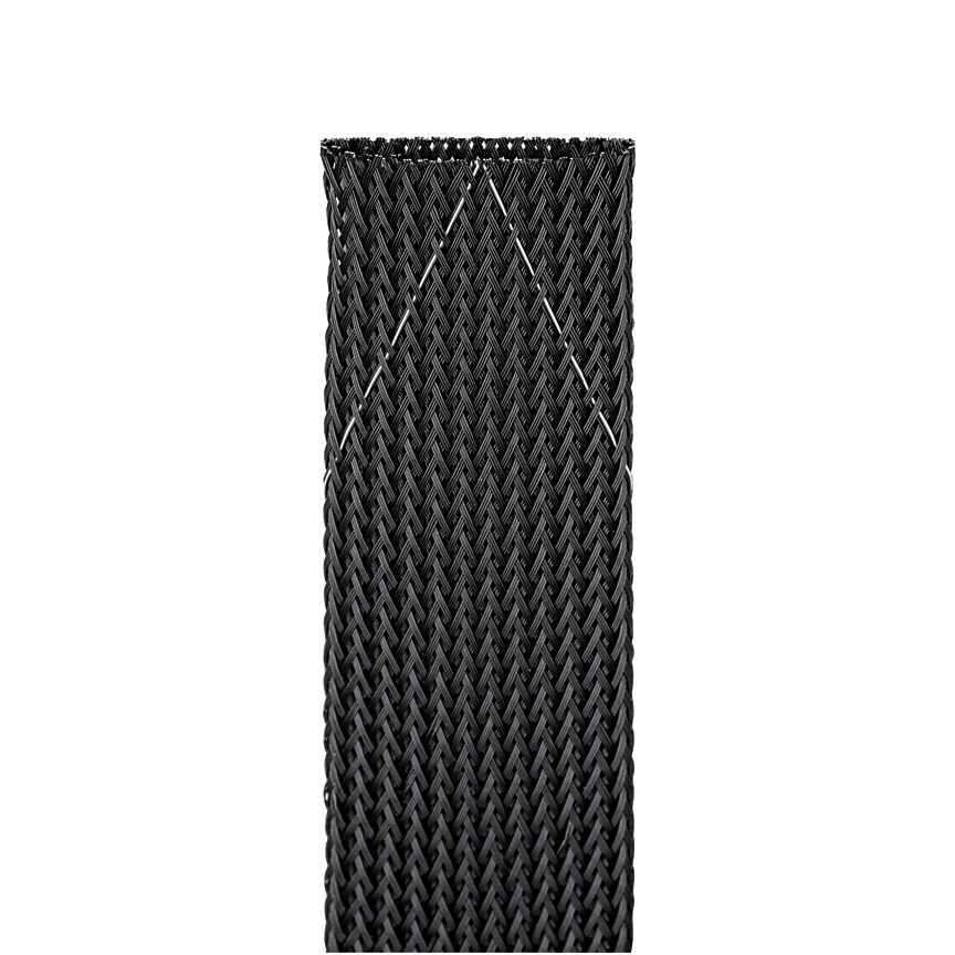 The SE125PFR-TR0 Braided Sleeving provides continuous abrasion resistance for wires, cables, and tubing. The lightweight, durable protection is highly flexible. The open weave will not trap heat or humidity. Complaint with U.S. and European passenger rail standards. Temperature range: -94°F – 257°F (-70°C – 125°C). Flame-Retardent Polyethylene Terephthalate. Nominal Diameter: 1.25" (31.8 mm), 200' (61 m) long. Color Black with White thread. 1 per package.