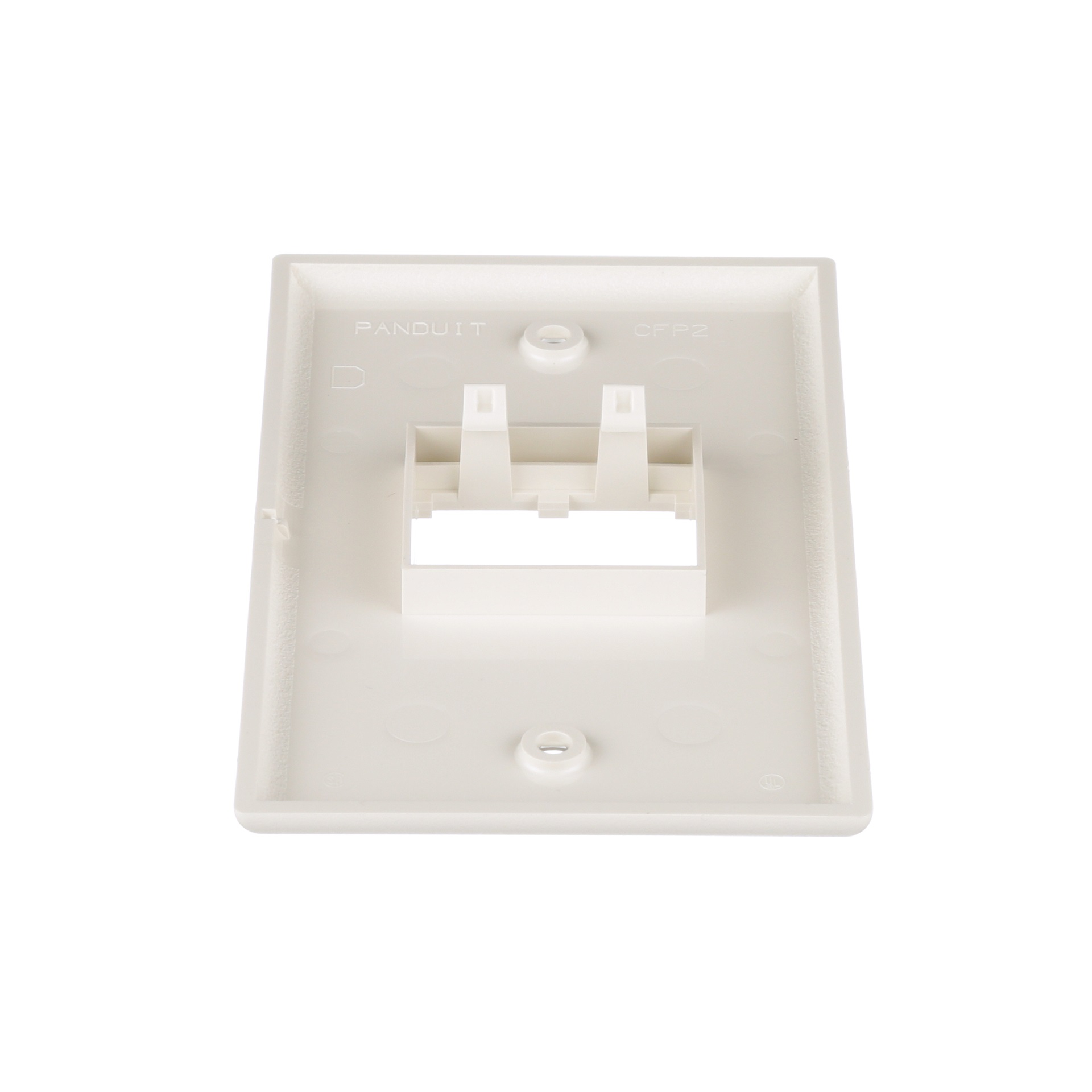 The Mini-Com® Classic Series Faceplate accepts two Mini-Com Modules. The faceplate is single gang and mounts to a NEMA standard single gang opening. The faceplate can be identified with an adhesive label and is off white.