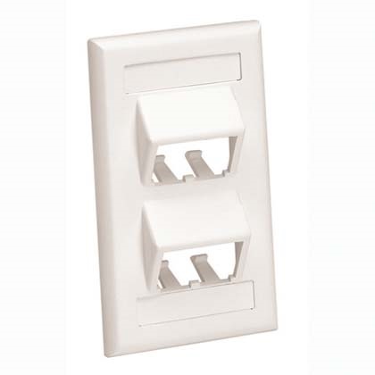 The Mini-Com® Classic Series Faceplate accepts four Mini-Com Modules. The faceplate is single gang, sloped and mounts to a NEMA standard single gang opening. The faceplate includes a label pocket for easy identification and is off white.