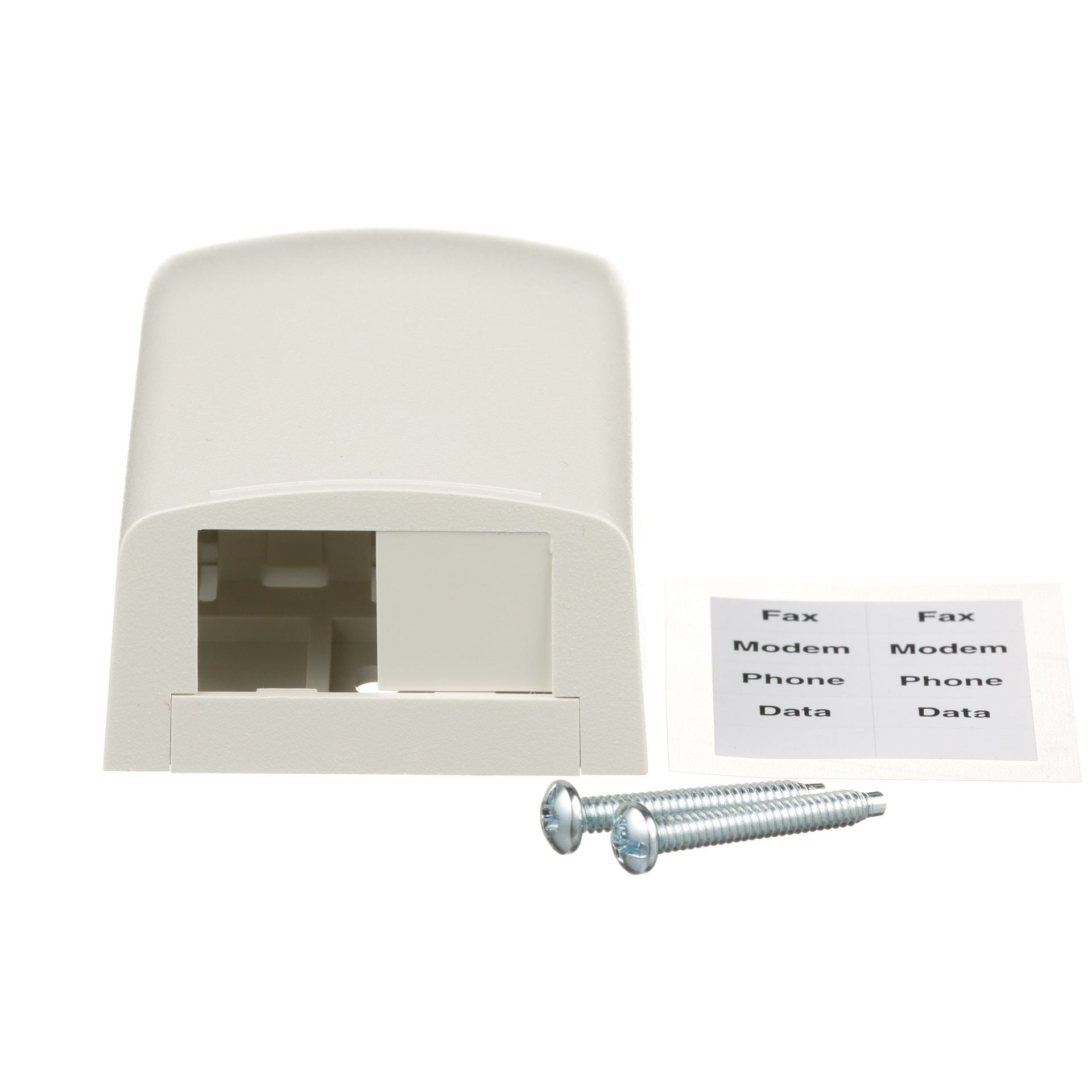 The Mini-Com® Surface Mount Box is plenum rated and accepts two Mini-Com Modules. The box offers a variety of mounting options using adhesive tape, screws, or optional magnet. The box can be identified with an adhesive label and is off white.