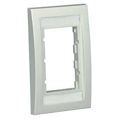 Single gang Executive style faceplate frame, accepts up to two 1/2-size module inserts or three 1/3-size module inserts. Supplied with labels and label cover/screw covers and is off white.