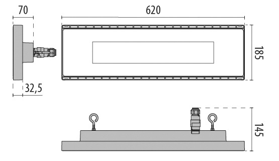 Apparecchi LED a sospensione, per interni, costituita da: Corpo e coperchio in alluminio pressofuso verniciato polveri poliestere previo trattamento di conversione chimica superficiale / Diffusore in vetro piano extrachiaro di sicurezza temprato / Gruppo ottico costituito da lenti in tecnopolimero ad elevata trasmittanza della luce / Guarnizione in silicone antinvecchiamento, ad elevata capacità di ritorno elastico / Connessione elettrica tramite connettore rapido presa-spina esterno IP66 che consente la connessione alla rete senza aprire il corpo illuminante, realizzato in PA66 con contatti in ottone argentato, per cavi Ø 9 - Ø 12 mm / Ganci di sospensione in acciaio zincato / Viteria esterna in acciaio inox / Molle di chiusura del vetro in acciaio inox / Le versioni EM sono complete di dispositivo di emergenza con autonomia di 1 ora, sono utilizzabili sia come illuminazione generale che di emergenza / Disponibili versioni con driver ON-OFF e dimmerabili DALI