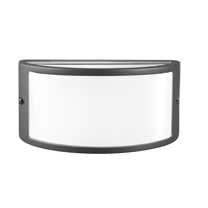 Apparecchio a parete per esterno (IP54) con attacco E27 che consente di montare lampadina LED. Strut tura in pressofusione di alluminio verniciato conpolveri poliestere a elevata resistenza ai raggi ultravioletti e alla corrosione, diffusore in policarbonato. Disponibile nella versione con effetto tutta luce, con luce diffusa e protetta o nella versione biemissione. Proposto in tre finiture: bianco, grigio, antracite. Disponibili giunti certificati IP68 per la realizzazione delle connessioni elettriche, sicure, durevoli e con barriera anticonde nsa.