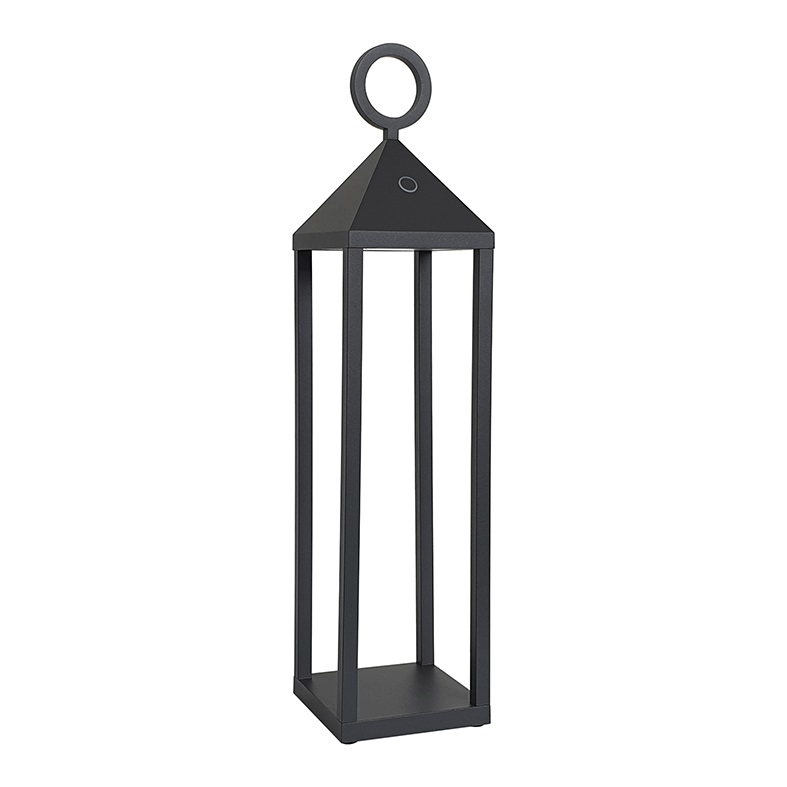 Lampada da tavolo a LED (2700K), portatile e ricaricabile, ideale per illuminare terrazze e giardini, ma perch? no, anche per rallegrare il tuo pic-n ic al parco. Una lampada senza fili, che ti segueovunque tu voglia andare. Struttura in pressofusio ne di alluminio verniciato con pretrattamento peruso da esterno (IP54). Accensione con interruttore touch dimmer e ricarica a contatto tramite l'apposita base, durata della batteria 12 ore. Disponibile in tre colori (bianco, antracite e corten) e in tre altezze. Possibilit? di installazione a sospensione tramite cavo e corda in finitura ecr? (5 mt) e a parete tramite gancio da ordinare come acces sorio.