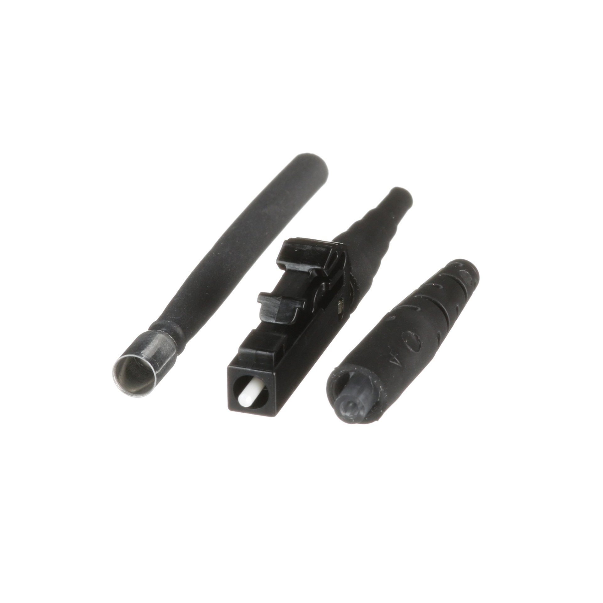 The simplex field polish LC Fiber Optic Connector is intended for installation onto multimode 50/125μm, 1.6mm jacketed fiber. The LC connector has a black body with a black 1.6mm boot.