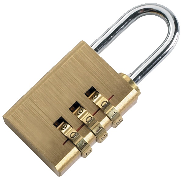 Lucchetto in ottone con codice, 30 mm. 3 numeri.