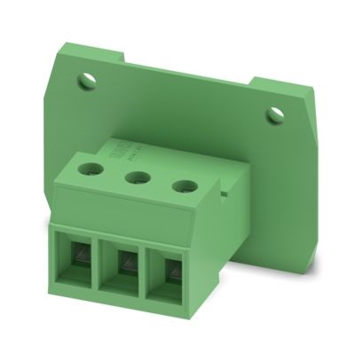 Connettore di passaggio, sezione nominale: 4 mm², colore: verde, corrente nominale: 20 A, tensione di dimensionamento (III/2): 630 V, superficie contatti: Sn, tipo di connessione del contatto: Spina, numero dei potenziali: 3, numero di file: 1, numero poli: 3, numero di connessioni: 3, serie di prodotti: DFK-PC 4/..-GF, passo: 7,62 mm, tipo di connessione: Connessione a vite con gabbia, forma di attacco delle viti: L Fessura longitudinale, montaggio: Montaggio diretto, direzione di collegamento conduttore/scheda: 0 °, numero di pin di saldatura per potenziale: 1, sistema di spine: COMBICON PC 4, Orientamento pin d'inserimento: Standard, bloccaggio: Bloccaggio a vite, tipo di fissaggio: Flangia filettata, tipo di confezione: confezionato nel cartone