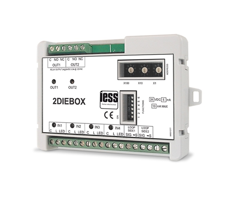 Il modulo analogico indirizzato linea IE per il controllo di 2 porte è una soluzione ideale per la gestione di dispositivi di controllo porte, come porte tagliafuoco o serrande. Questo modulo consente di ricevere segnali da sensori e dispositivi per il controllo completo delle porte, attivando la chiusura tramite relè di uscita.Caratteristiche tecnicheIngressi bilanciati: 4 ingressi bilanciati per il controllo di 2 porte o serrande.Uscite a relè bistabili: 2 uscite a relè per la chiusura delle porte, ognuna associata a una coppia di ingressi, con relè C-NC-NA con portata di 2 A a 30 Vcc.Indirizzamento tramite rotary switch: Indirizzamento facile tramite rotary switch per la gestione semplice e precisa.Alimentazione e consumi: Alimentazione 24 Vcc fornita dal loop.Consumi: 5 mA a riposo, 10 mA in allarme.Funzione pratica:Questo modulo consente una gestione completa di 2 porte o serrande tagliafuoco, semplificando l'integrazione nel sistema di sicurezza con il suo design compatto e facilmente configurabile. Ideale per sistemi di protezione avanzati che necessitano di un controllo preciso e affidabile delle porte di sicurezza.Certificazioni:CPR 305/2011EN54-17 ed EN54-18.