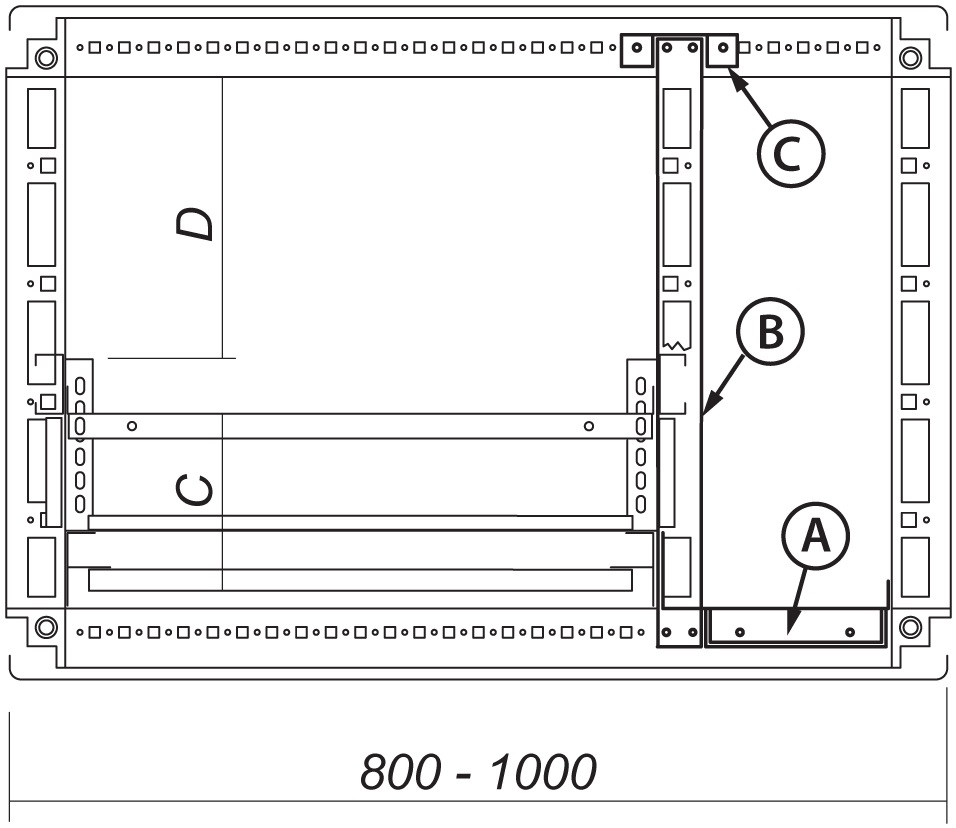 Modularità interna con fascia laterale da 200, completa di viteria per il montaggio.