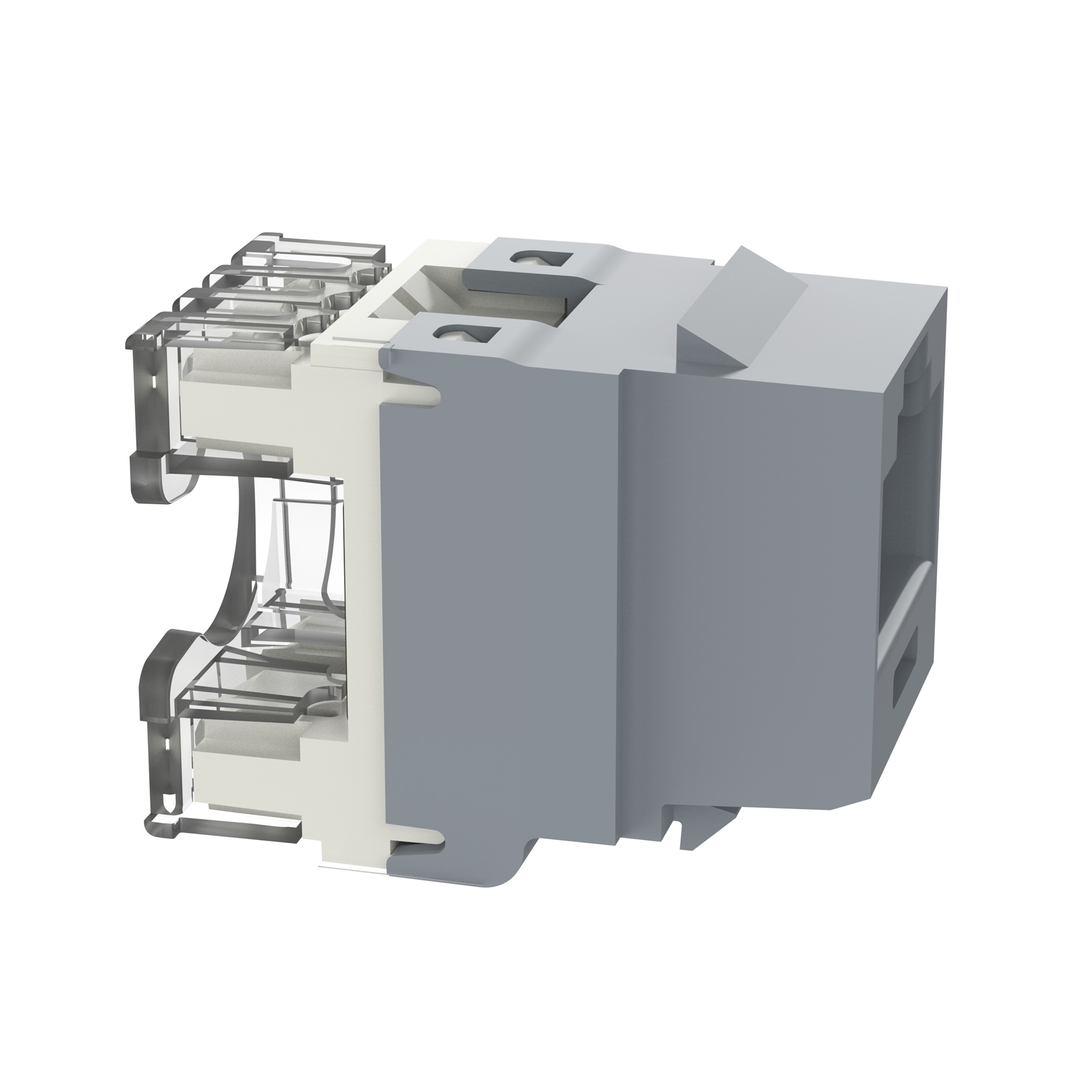 The NetKey® Cat 6 UTP RJ45 Punchdown Keystone Jack Module is designed to terminate 4-pair, 22-26 AWG twisted pair cable. Each module is 100% factory tested to exceed industry standard performance requirements. Contacts are plated with 50 microinches of gold for superior performance. Jacks are individually serialized, and are compatible with keystone interfaces such as NetKey® Faceplates, Modular Patch Panels, and Surface Mount Boxes. The module is international gray.