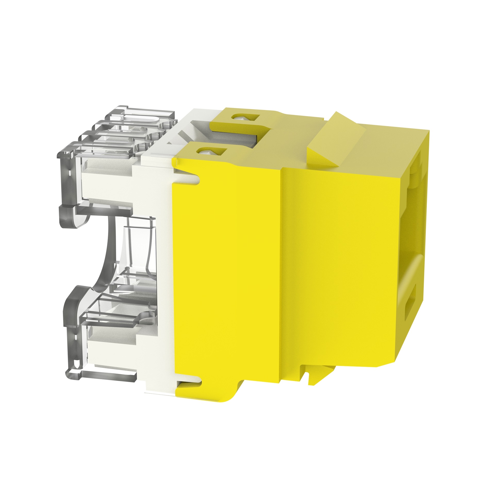 The NetKey® Cat 6 UTP RJ45 Punchdown Keystone Jack Module is designed to terminate 4-pair, 22-26 AWG twisted pair cable. Each module is 100% factory tested to exceed industry standard performance requirements. Contacts are plated with 50 microinches of gold for superior performance. Jacks are individually serialized, and are compatible with keystone interfaces such as NetKey® Faceplates, Modular Patch Panels, and Surface Mount Boxes. The module is yellow.
