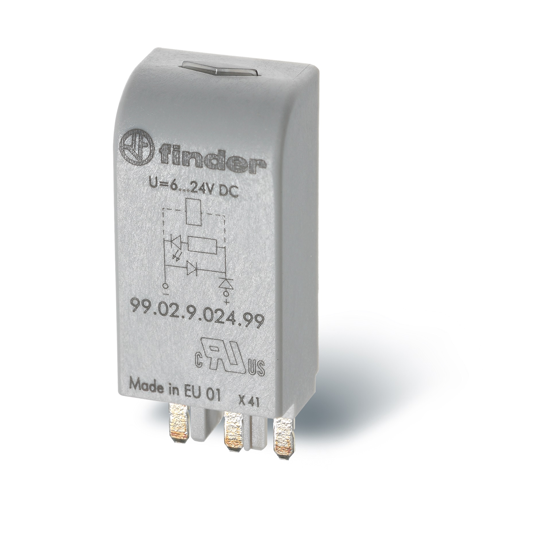 Moduli di segnalazione e protezione bobina Serie 90/92/94/95/96/97 Finder cod: 9902922099 appartente alla SERIE 99 Descrizione della serie: Secondo il modulo selezionato si possono fornire; Soppressione delle sovratensioni provocate dall’apertura della bobina LED di segnalazione di presenza tensione Protezione contro l’inversione di polarità applicata alla bobina Circuito di soppressione corrente residua