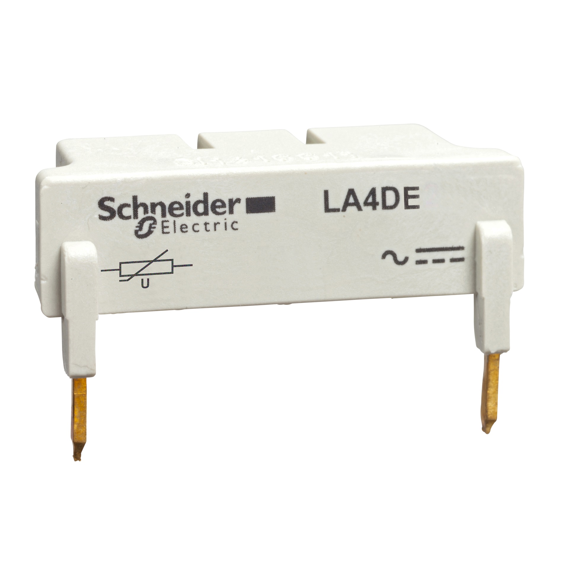 Modulo soppressore D di TeSys, per contattori LC1D80-D150 (3P), LC1D80-D115 (4P). Da utilizzare con tensione del circuito di comando 50-127V AC, Dispone di la protezione del varistore mediante limitazione della tensione transitoria a 2 Uc max. Montaggio sulla parte superiore del contattore, fissaggio a vite e collegamento sui morsetti a bobina.