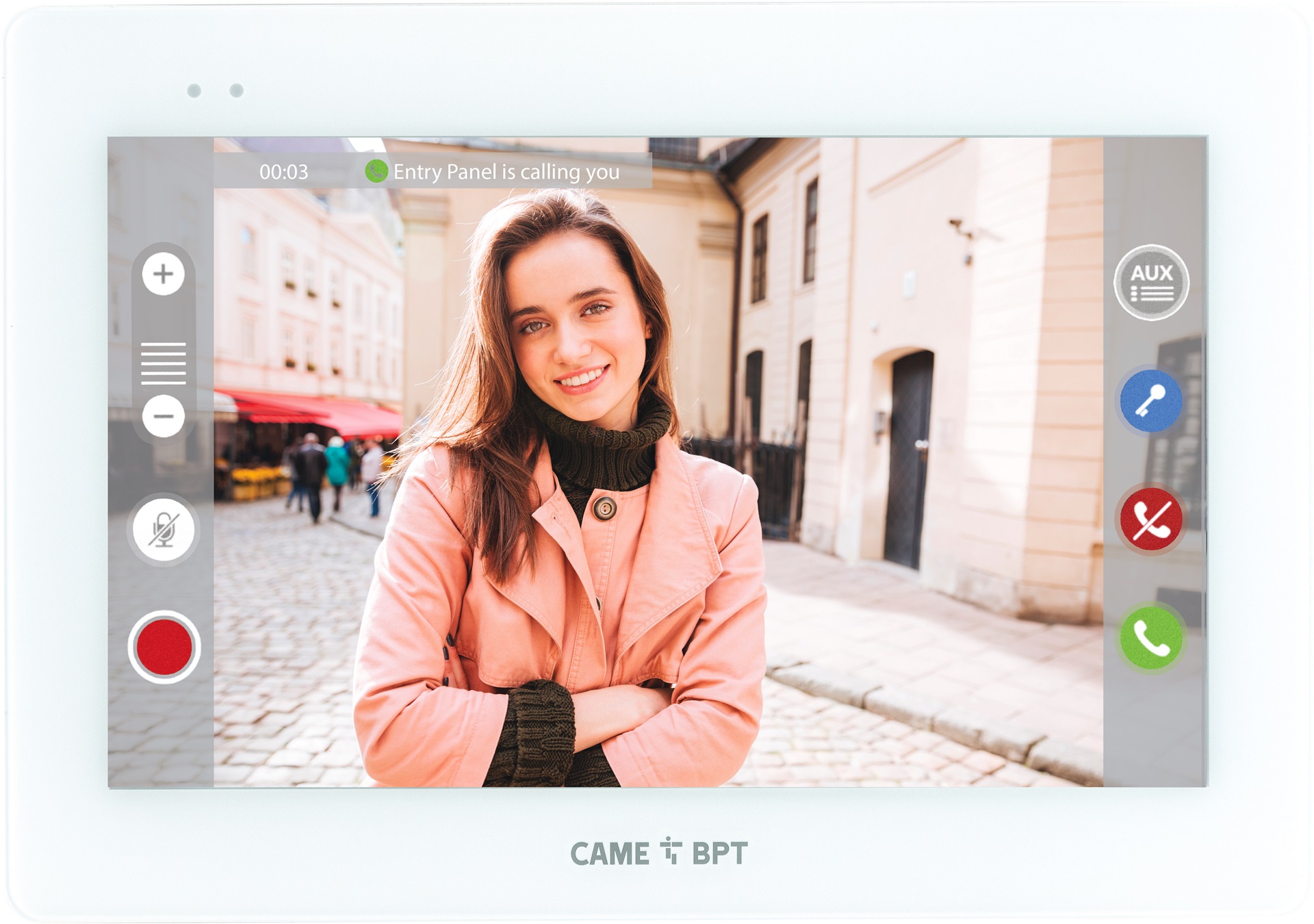 Monitor a parete con display TFT touch screen da 7˝ con tecnologia Optical Bonding, Wi-Fi integrato per la remotizzazione della chiamata su smartphone con app dedicata. Interfaccia utente per la gestione di funzioni videocitofoniche, chiamate intercom, videosegreteria, messaggistica testuale. Utilizza protocollo SIP e codec audio G711 e video H.264. Porta RJ45 per la connessione di rete, alimentazione PoE o locale. Web server integrato per configurazione e aggiornamenti firmware. È inclusa la staffa per l'installazione a parete su scatola 503 (orizzontale) e su scatola tonda Ø 60 mm. Predisposto per l'installazione ad incasso con scatola dedicata. Compatibile con sistema IP360.