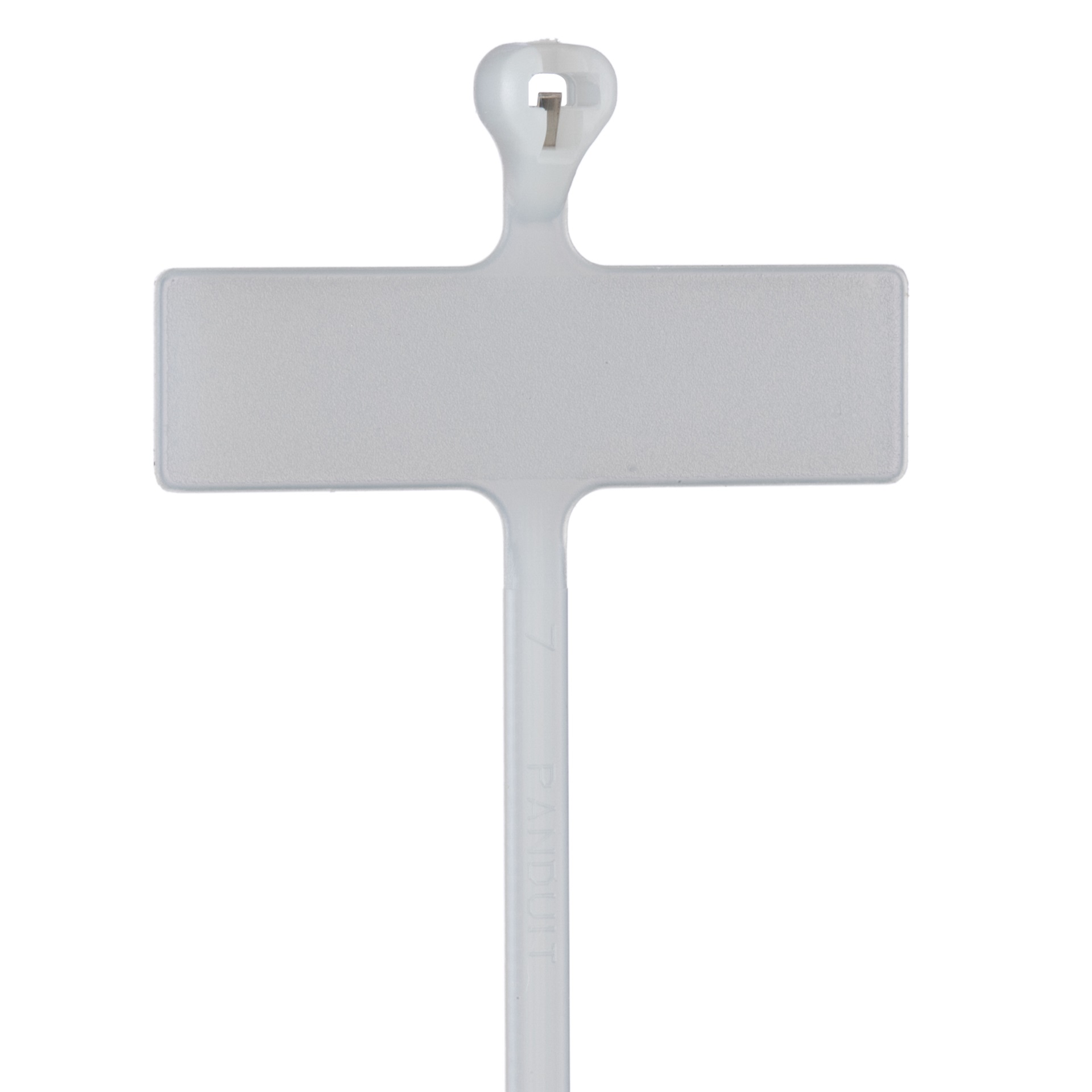 Marker Tie, Wrap Style, 4.2 Inches (107 mm) Length, Miniature, Nylon 6.6, Natural. For indoor use. Used to fasten and identify bundles at the same time. Stainless steel locking barb provides consistent performance, reliability and infinite adjustability through entire bundle range. Curved tip is easy to pick up from flat surfaces and allows faster initial threading. Can be used with Panduit permanent marker pens.