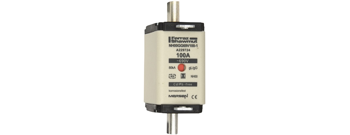 DIN NH Standard fuse-link gG Size NH00 690VAC 250VDC 100A isolated tags Double indicator Body width 30 mm