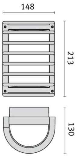 Apparecchio da parete, da soffitto e da palo, per interni ed esterni, costituito da: Corpo e gabbia in alluminio verniciato / Diffusore in vetro pressato satinato internamente e solidale all’anello / Parabola e staffe cablaggio in alluminio / Guarnizione in polimero espanso / Viti di chiusura in acciaio inox