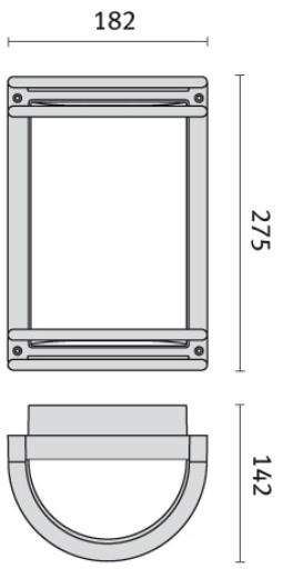Apparecchio da parete, da soffitto e da palo, per interni ed esterni, costituito da: Corpo e anello in alluminio pressofuso verniciato / Diffusore in vetro pressato satinato internamente e solidale all’anello / Parabola e staffe cablaggio in alluminio / Guarnizione in polimero espanso / Viti di chiusura in acciaio inox