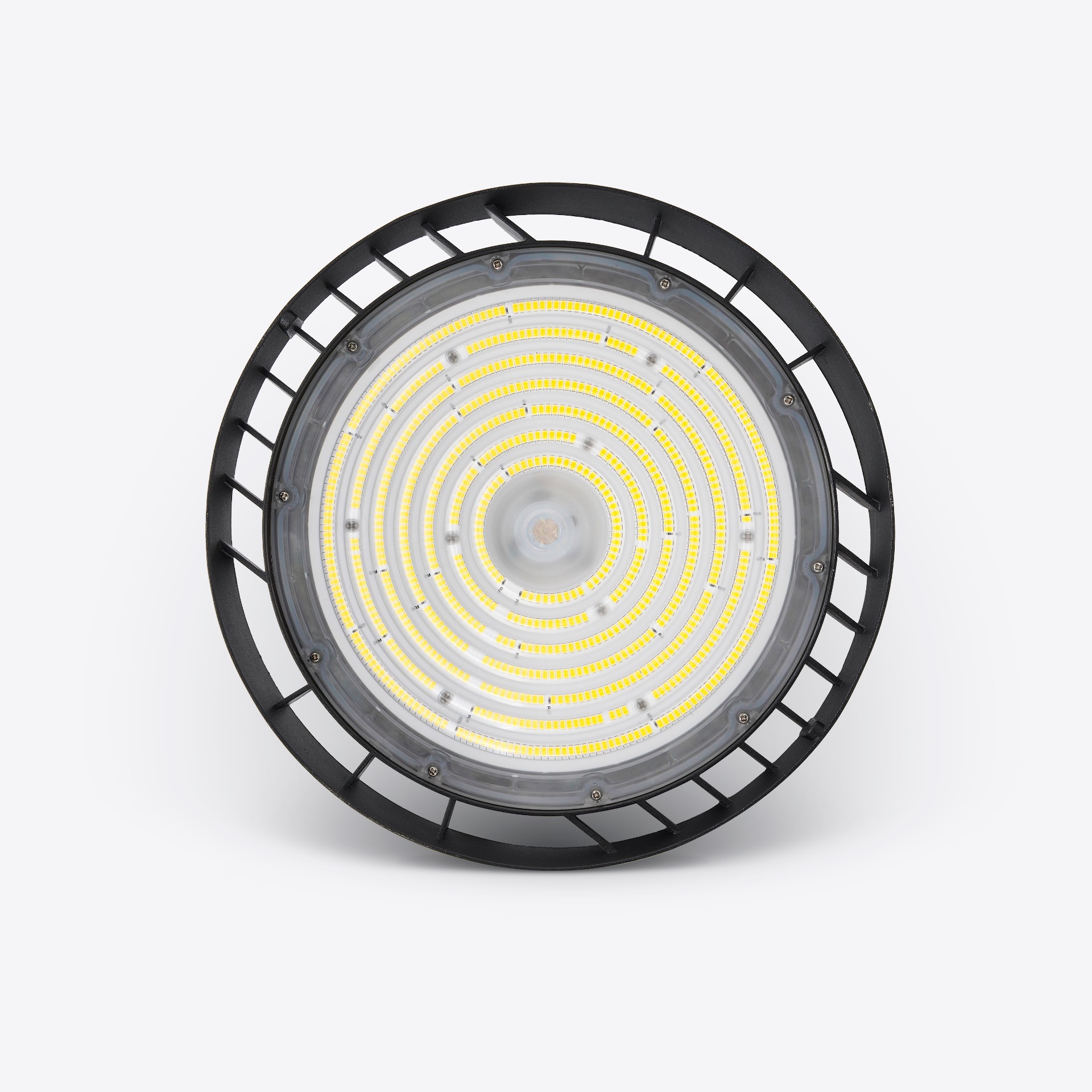 Lampada industriale Highbay Omnia con potenze disponibili di 110, 160 e 200 watt, caratterizzata da un'elevata efficienza luminosa di 150 lumen per watt. Progettata per garantire un'illuminazione intensa e uniforme in ambienti industriali e commerciali, questa soluzione combina prestazioni elevate con un consumo energetico ottimizzato, assicurando risparmio e affidabilità nel tempo.